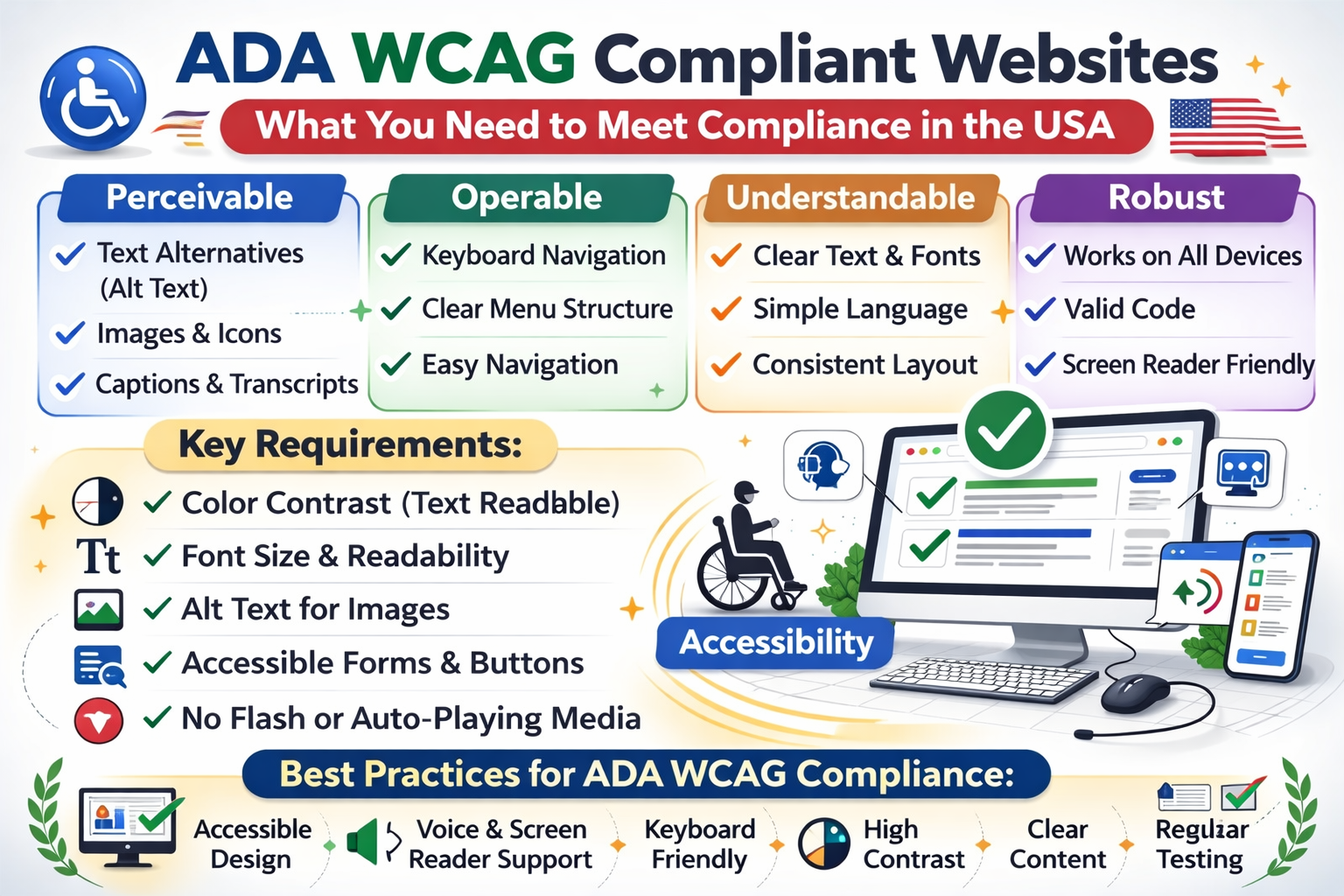 That means your website, eCommerce store, and even your Facebook page must meet WCAG accessibility standards — or risk costly legal exposure.